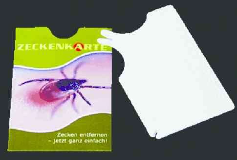 “Tick card” to be used for removal of ticks from the skin (size of credit card).