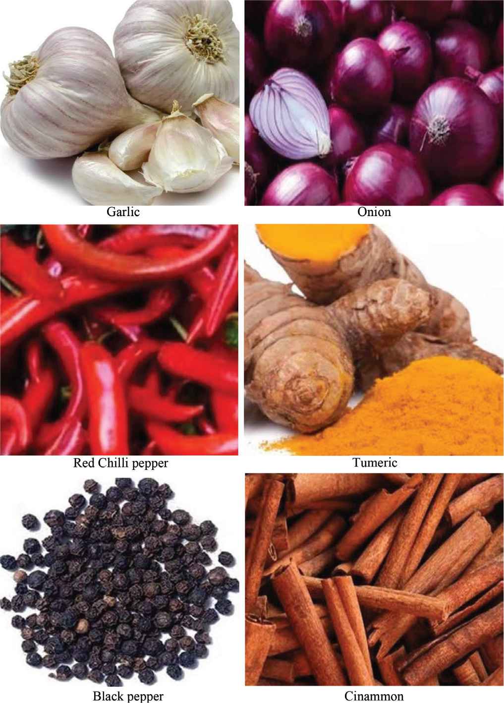Spices are natural plants or vegetable products or their mixtures in whole, crushed or powdered form which serves as esoteric food adjuncts or additives and majorly used as flavors, colorants, preservatives and sometimes as aroma and palatability enhancers [11,67,68]. The distinctive scents of virtually all spices can be detected on the breath following oral ingestion. The classification of spices depend on their origin, the active principle present in them or the parts used [69]. The basic classification of spices and few examples in each category are presented in Table 1.