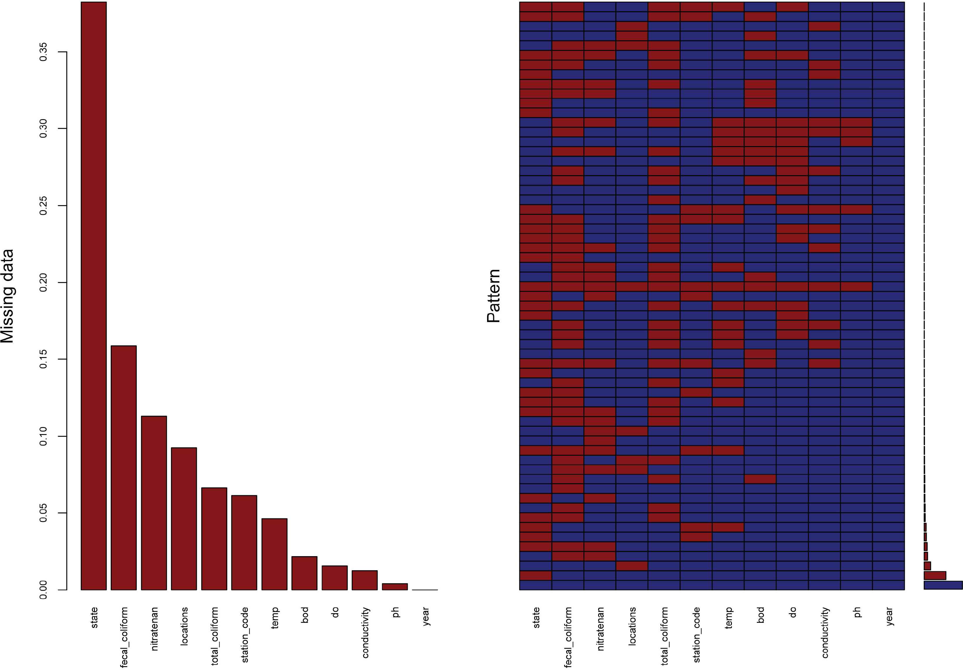 Missing data methods based on random forests (RF) are a likable technique for attributing missing data. The plot of missing value of training dataset is shown to Figure 2. It has the desired qualities of being able to manage many forms of missing data, being adaptable to nonlinearity and interactions, and having the capacity to balance large data sets. There are several RF imputation methods available now, but little information on their effectiveness. The imputation performance of several RF methods was evaluated using a wide, diversified collection of data sets and distinct missing data techniques. Proximity imputation, on-the-fly imputation, and imputation based on multivariate unsupervised and supervised splitting are all examples of imputation techniques and among the algorithms used, with the latter being an extension of a promising new imputation approach known as missForest [14].