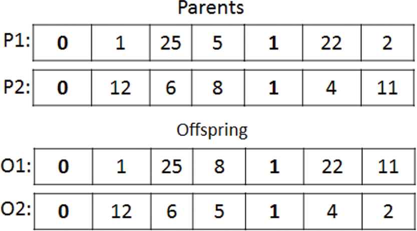 Figure 8 shows other hypothetical parents in a VSL mode performing a crossover operation. For each segment in the parents, a random point is set as close as to the idle of each segment and the crossover is performed between each corresponding segments.