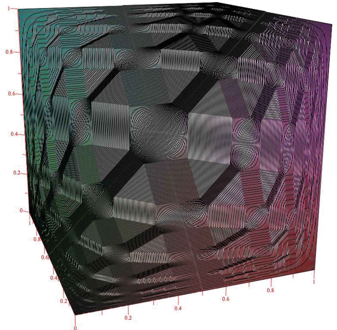 Visualization: the graphs of two basic group-like uninorms, U0= and U1=× shrank into ]0; 1[. One can describe U1 as infinitely many U0 components. Imagine U2 in the same way: as infinitely many U1 components, etc.