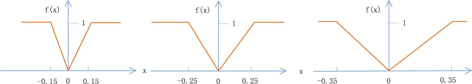 In the above case study, we assume that the threshold of the preference function in the PROMETHEE method is 0.3. In this section, we set the threshold as 0.15, 0.25, 0.35 to represent the experts' preferences and sort the alternatives. The function is shown in Figure 3.