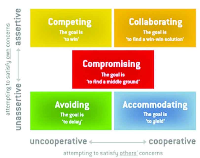 • By cause of conflict, conflicts are classified as (i) conflict from different goals, (ii) conflict from resource disparity, (iii) conflict by other people’s obstruction, (iv) conflict due to stress and psychological pressure from many people, (v) conflict due to ambiguity of jurisdiction, and (vi) conflict due to misleading communication.