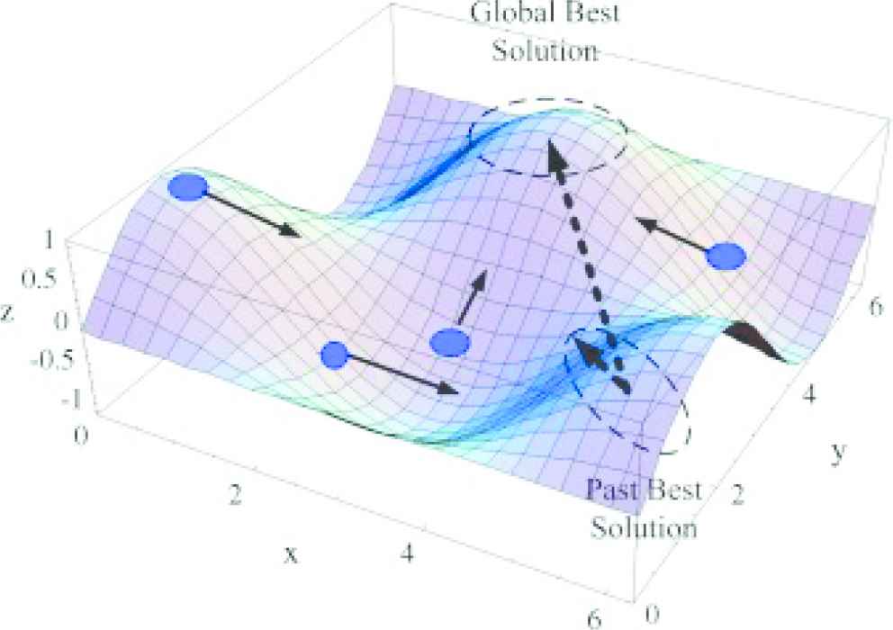 Particle swarm optimization (PSO) and evolutionary algorithms such as GA have been used to solve multi-objective problems; they have many similar behaviors but also have differences in performance across certain problem areas. They both have the same mechanism, in that the system is initialized by generating a population randomly and searching for optima by refining this population. Nonetheless, PSO does not use techniques such as cross-over and mutation for updating and, so, may prematurely converge to a local optimum. The authors prove that PSO and GA have the same effectiveness in solution quality, but that PSO has superior computational efficiency over GA. The advantages of PSO are that it uses fewer parameters and evaluation functions than GA [19].