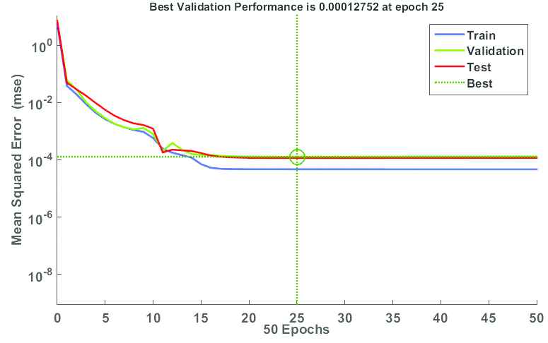 Training, validation, and testing MSE curves during the training of the combination of mathematical system modeling and autoregressive learning approach.