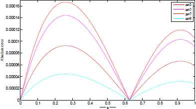 with the exact solution u(x)=1x32+x4 . Here, we intend to compare the numerical results with the ones obtained from the hybrid collocation (HC) method 35. The maximum absolute errors (∥.∥) between approximate and exact solutions are numerically compared in Table 2. Similarly, the computer simulations are presented in Figures 1213.