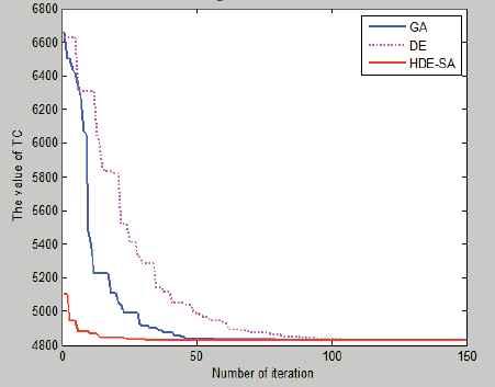 Thus, we extend the existing DESA by introducing the adaptive mutation factor, which decreases gradually with evolutionary generation. The large value in the initial period can rapidly explore possible solution space, and the small value in the later period can exploit the optimal solution in explored solution space. The new method is referred to as hybrid DE based on SA (HDESA). For better comparison, we also use basic DE and GA to resolve this non-deterministic polynomial hard (NP-hard) problem because they are other widely-used and good approaches for solving the similar problems. Results of contrastive examples and randomly generated problems illustrate that, compared with other algorithms, HDE-SA is more effective and robust in resolving this complex problem.