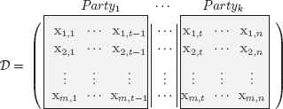 In this work, arbitrarily partitioned data exist between multplei sites (K), where K > 2 is considered. In the arbitrarily partitioned data scheme, there is not any specific order of how the data set is split between the multiple sites. More specifically, let us give a data set X = {x1