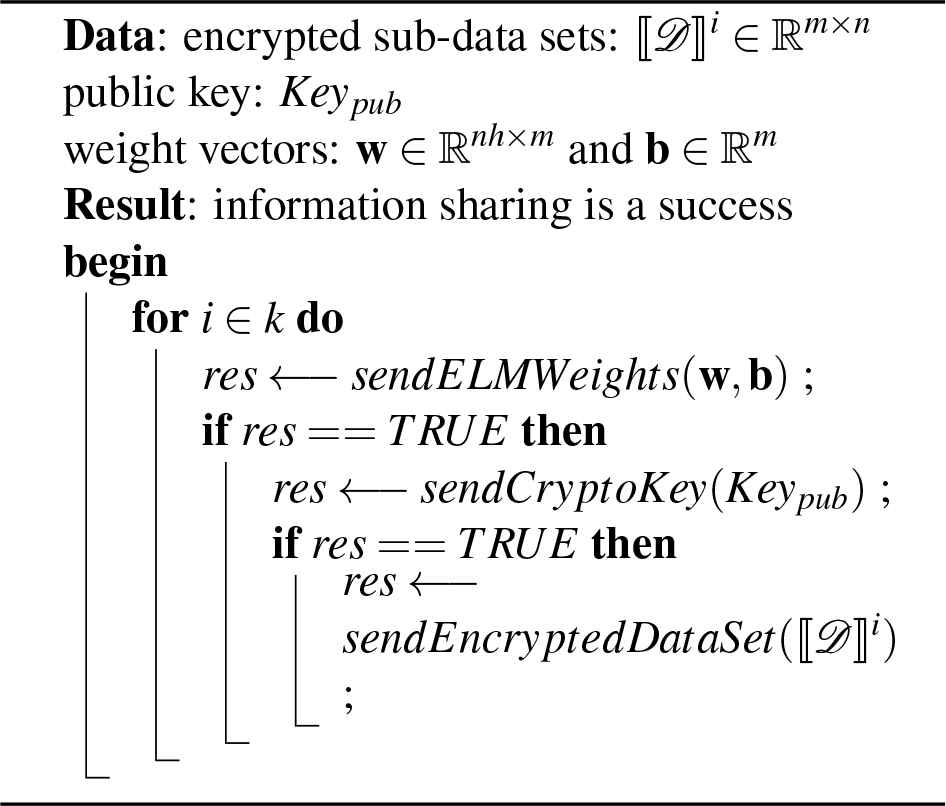 Samet et al. 25 proposed new privacy-preserving algorithms for both back-propagation training and ELM classification between several sites. Their proposed algorithms are applied to the perceptron learning algorithm and presented for only single-layer models.
