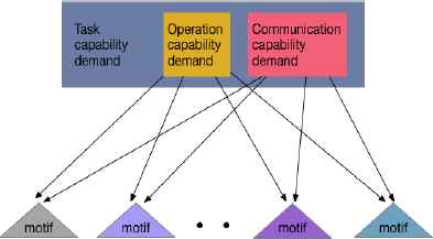 As communication plays an important role in UAV operation, we add a communication capability demand vector constraint. Fig. 2 shows the decomposition of task capability demand capability into operation capability demand and communication capability demand. We use the new capability demand vector to calculate the types and numbers of motifs needed to complete a task. A task is considered completable when the capability vectors of motifs is component-wise greater than or equal to the task’s capability demand vector.