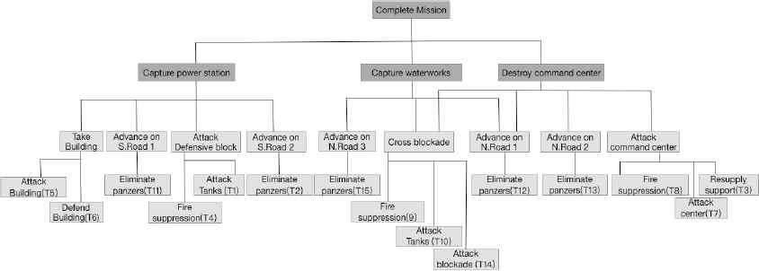The fundamental question underlying the design of a mission planning model is, “Who or what should do which part of the mission?” It implies that a mission is decomposable into a set of tasks. We use a goal decomposition method23 to perform mission decomposition. We assume that a mission is decomposable into a task set Ti (i = 1,2,...,NT), where NT is the number of tasks. We characterized every task Ti according to the following attributes: