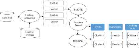 Given the feature vectors attached with the class label, the oversampling is performed on the minority classes using SMOTE. Then the ensemble learning algorithm, Random Forest starts learning from the training set. After the comment classification is finished, all comment in each class are further clustered in order to organize the comment into hierarchical structure (see Fig. 1). Note that comments that are classified as class Others are filtered out.
