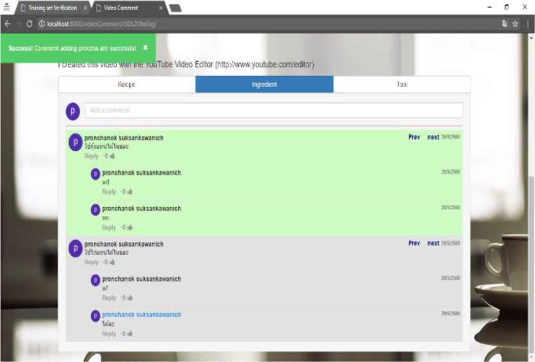 Food and recipes are one of the preferred content categories found in YouTube channels. Most of user’s comments for how-to clips are in question forms related to Ingredients, Cooking tools and techniques. Even though the platform allows the communication among viewers but the comments has not yet been organized. The clip owner needs to interact with those comments however there are quite a number of comments asking the same questions whilst the owner must take his time to keep answering these comments. If we can manage the comment in such a way that the same category of question is grouped with the response. It will also benefit other viewers to explore frequently asked question based on category.
