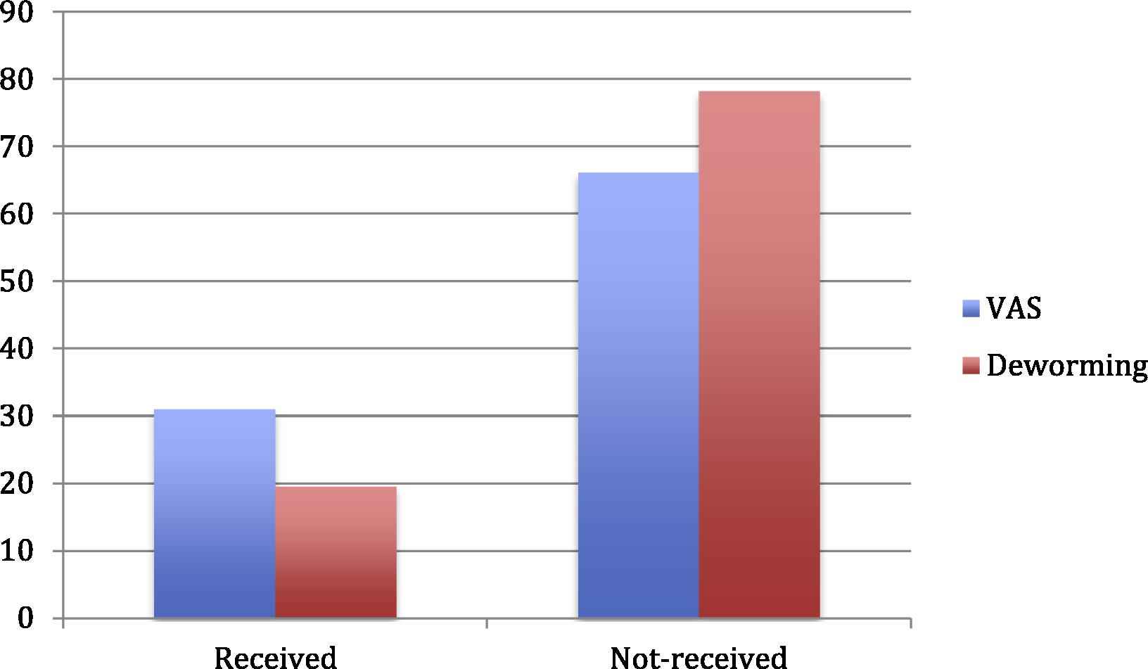 Vitamin A and deworming coverage during the May 2012 Malezi Bora was significantly lower than WHO recommendations with coverage of 31.0% for VAS and 19.6% for deworming, which is consistent with VAS coverage measured by the 2009 DHS. According to WHO and UNICEF recommendations, twice-yearly VAS coverage of at least 80% is necessary to significantly increase child survival among children aged 6–59 months [11]. Based on a 24% reduction in child mortality with universal VAS coverage, an estimated 16,413 lives could be saved per year if universal VAS coverage is achieved in Kenya for children aged 6–59 months of age [HKI unpublished methodology].