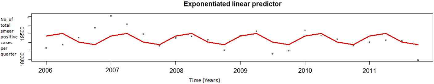 In the context of India, Thorpe et al. [14] assessed the seasonal patterns in TB for the period 1996–2001 and reported that the behavior of TB is seasonal in northern region of the country with peak occurring in second quarter and trough in fourth quarter of the year; however seasonality was not observed in south India. Recently, Kumar et al. [15] observed a seasonal pattern and declining trend in the TB data of Delhi for the period 2007–2012.
