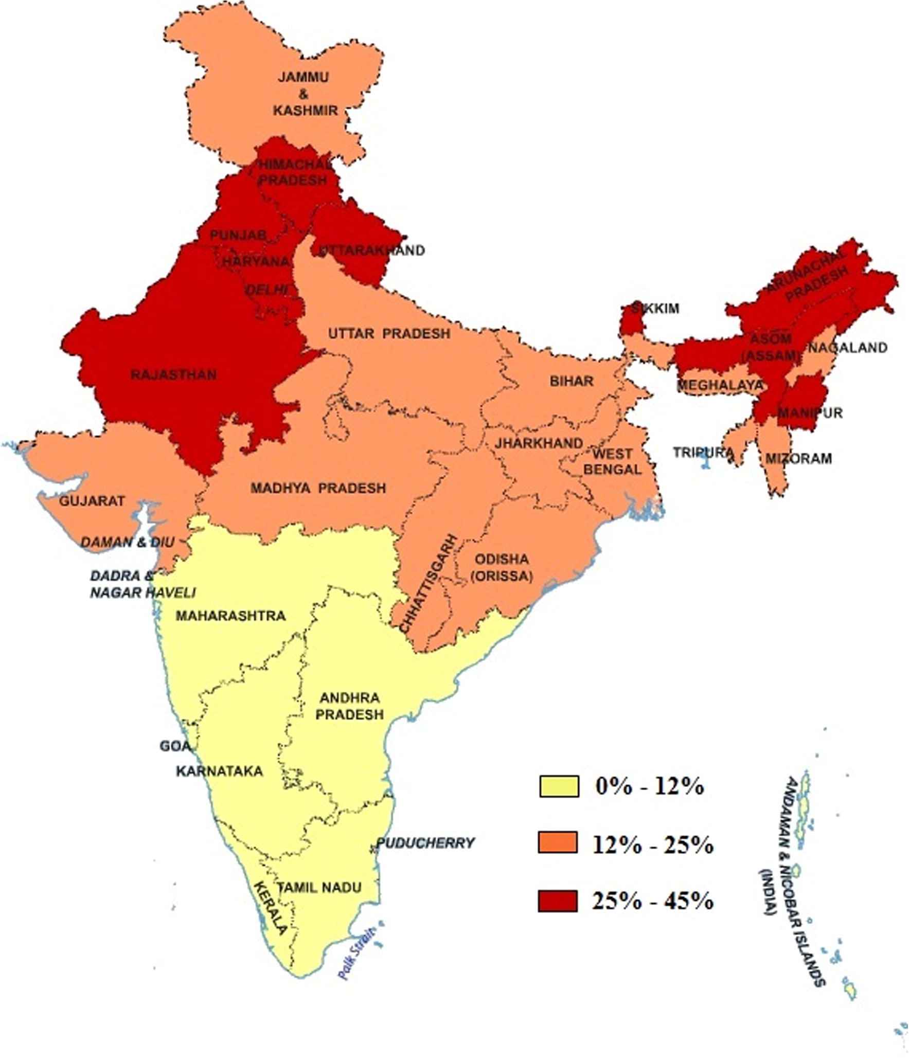 | 34. | West Bengal | 23.77 | 20.02–25.61 |