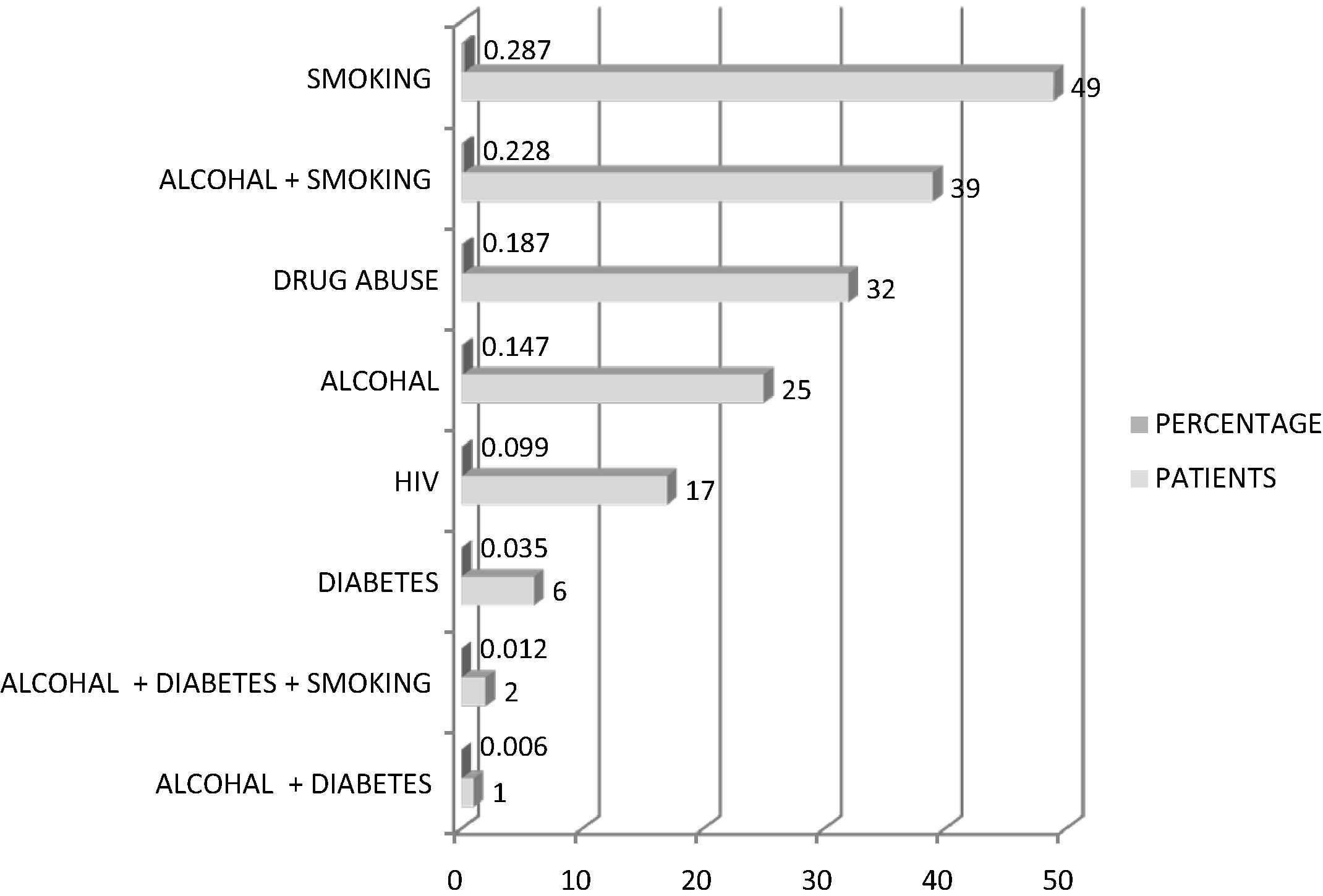 Distribution of risk factors in the tuberculosis patients.