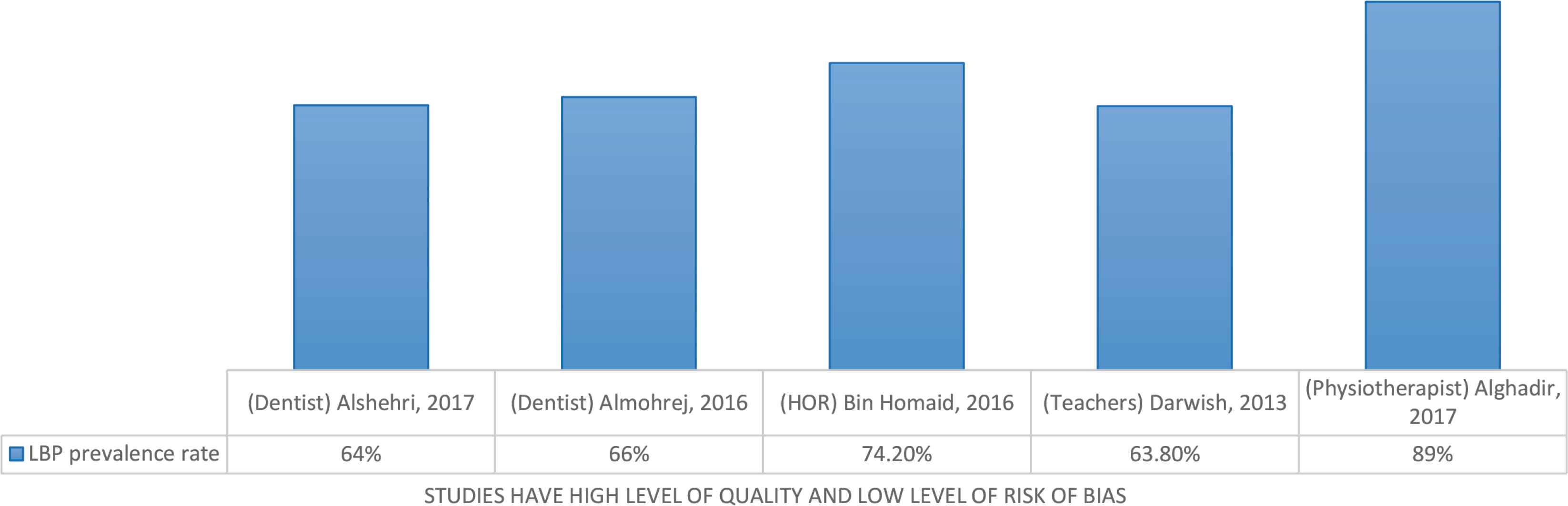 This systematic review sought to identify the prevalence and incidence of LBP in the Saudi Arabian population.