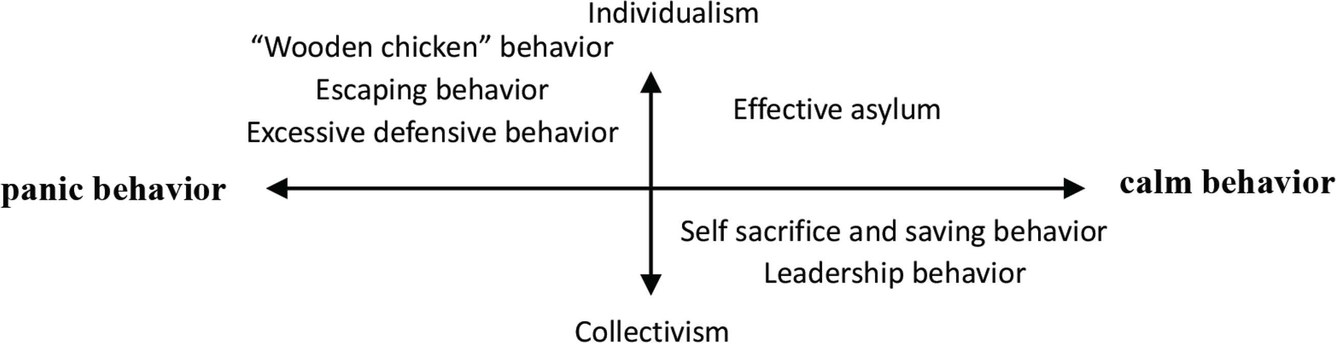 | 1. Bimodality | After the disaster, people’s psychological behavior state is only rational and irrational, which is especially embodied in the rational behavior of prosocial behavior and reciprocal cooperation; the irrational behavior of conflict, distrust and panic, etc. |