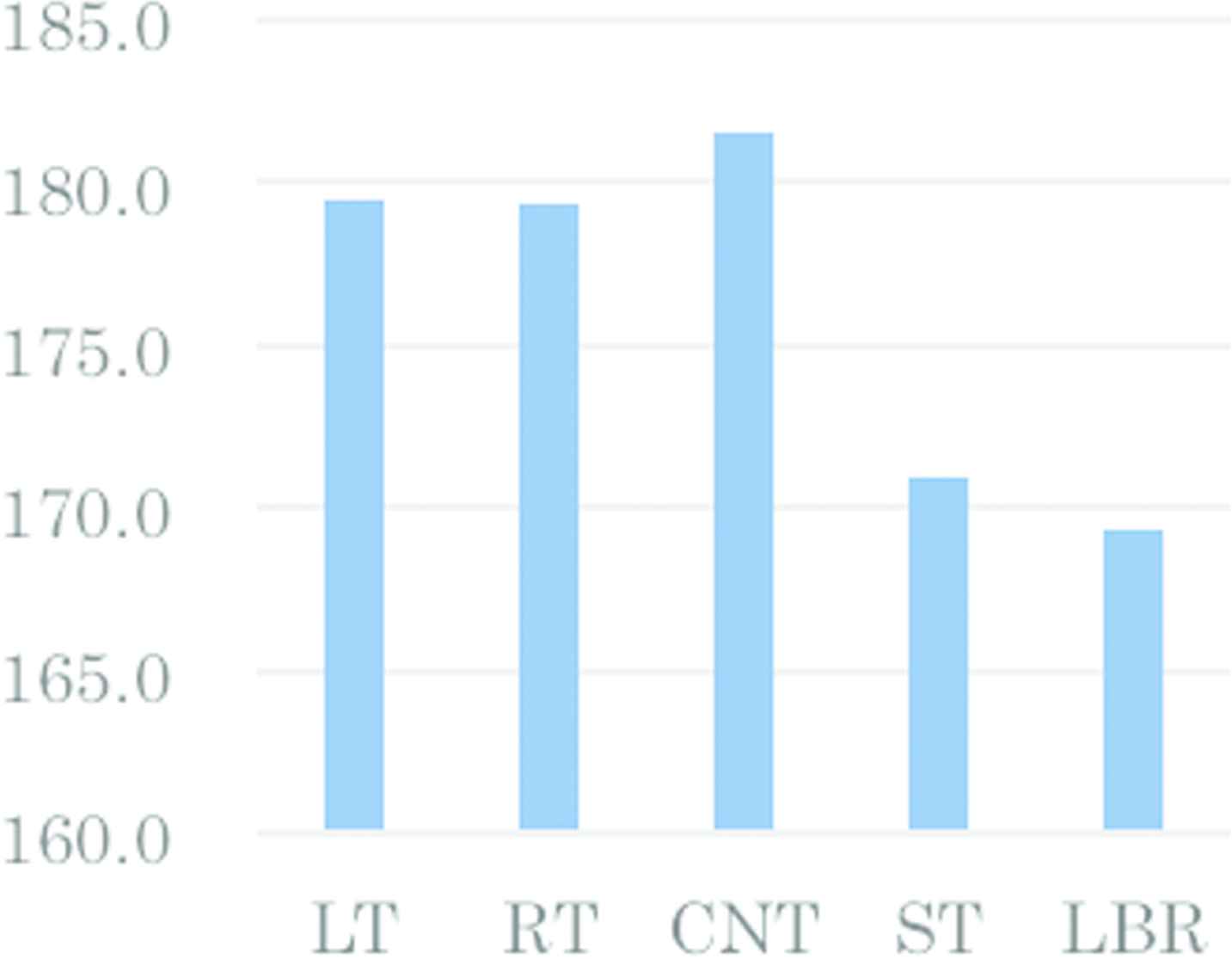 Figure 3 shows the evaluation result of DIPCA.3. The horizontal axis denotes each evaluation criteria. The vertical axis shows evaluation value. Each evaluation maximum value is 20 (point). The color bars describe the each position (LT, RT, CNT, ST, and LBR).