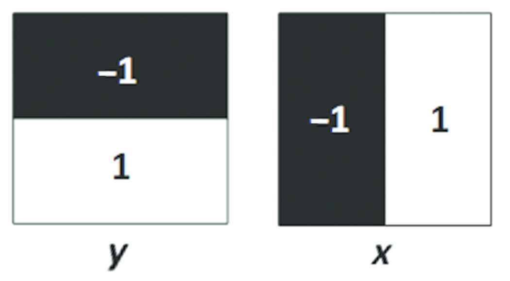 The wavelets response. Black and white areas show the weight −1 and 1 for the Haar kernels.
