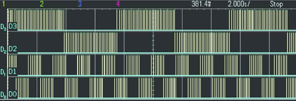 Biomimetic CPGs [12–15] are implemented in a digital platform: CMOD A7-A35 Xilinx Artix-7 Field Programmable Gate Array (FPGA). The neural network implementation architecture operates on a single computation core. This real-time digital system requires few resources and low power consumption [16–19]. Table 1 summarizes the stated resources and Figure 2 describes two CPGs with different periods.