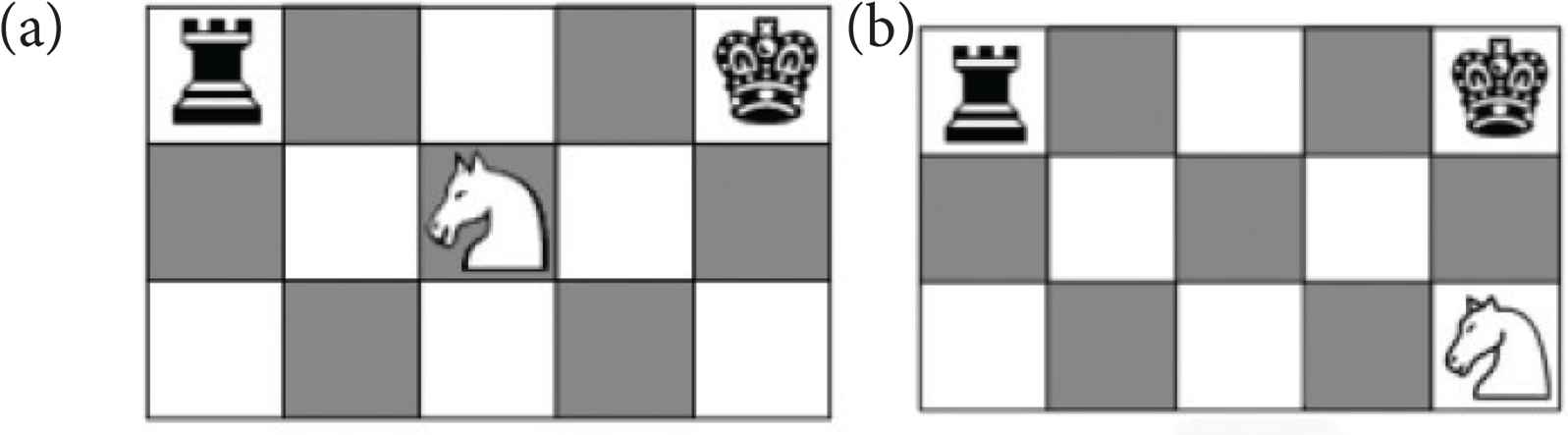 Structure in the game of chess. (a) A knight fork in chess. (b) a knight fork precursor.