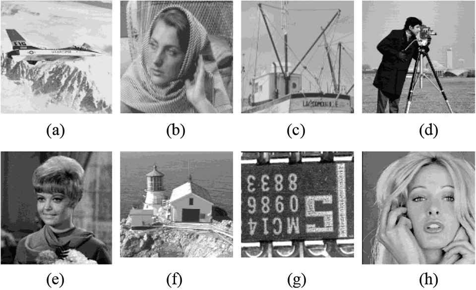 AOR images. (a) Airplane, (b) Barbara, (c) boat, (d) cameraman, (e) girl, (f) lighthouse, (g) text, (h) woman.