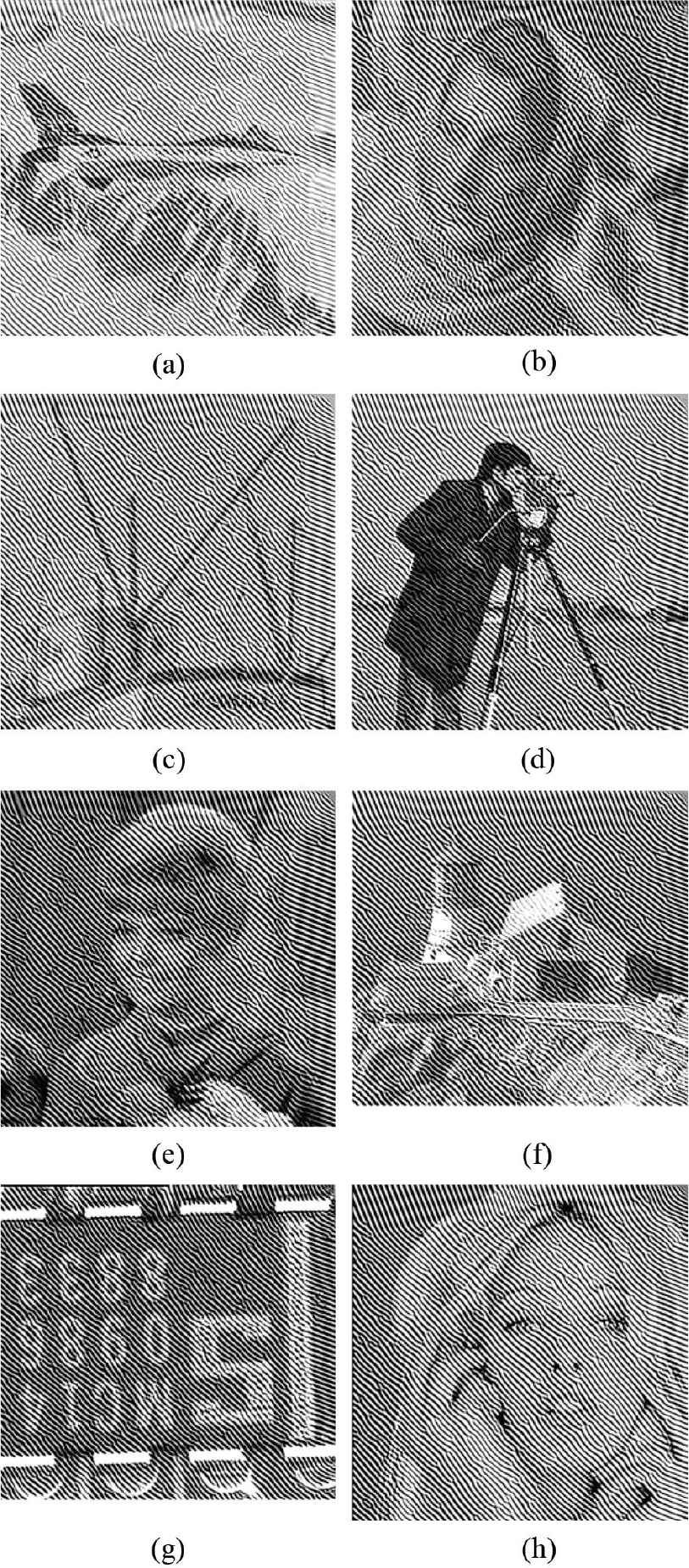 Various photographic images. (a) Airplane, (b) Barbara, (c) boat, (d) cameraman, (e) girl, (f) lighthouse, (g) text, (h) woman.