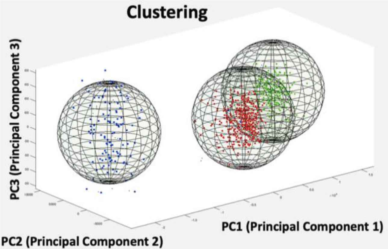 Finally, Principal Component Analysis (PCA) was used for parameters extraction, such as the amplitude or spike width, and data dimension reduction. In this analysis, each spike became a point in a three-dimension space. As a result, spikes were divided into clusters in such a way that the spikes in the same cluster are more similar to each other than to those in other clusters (Figure 7).
