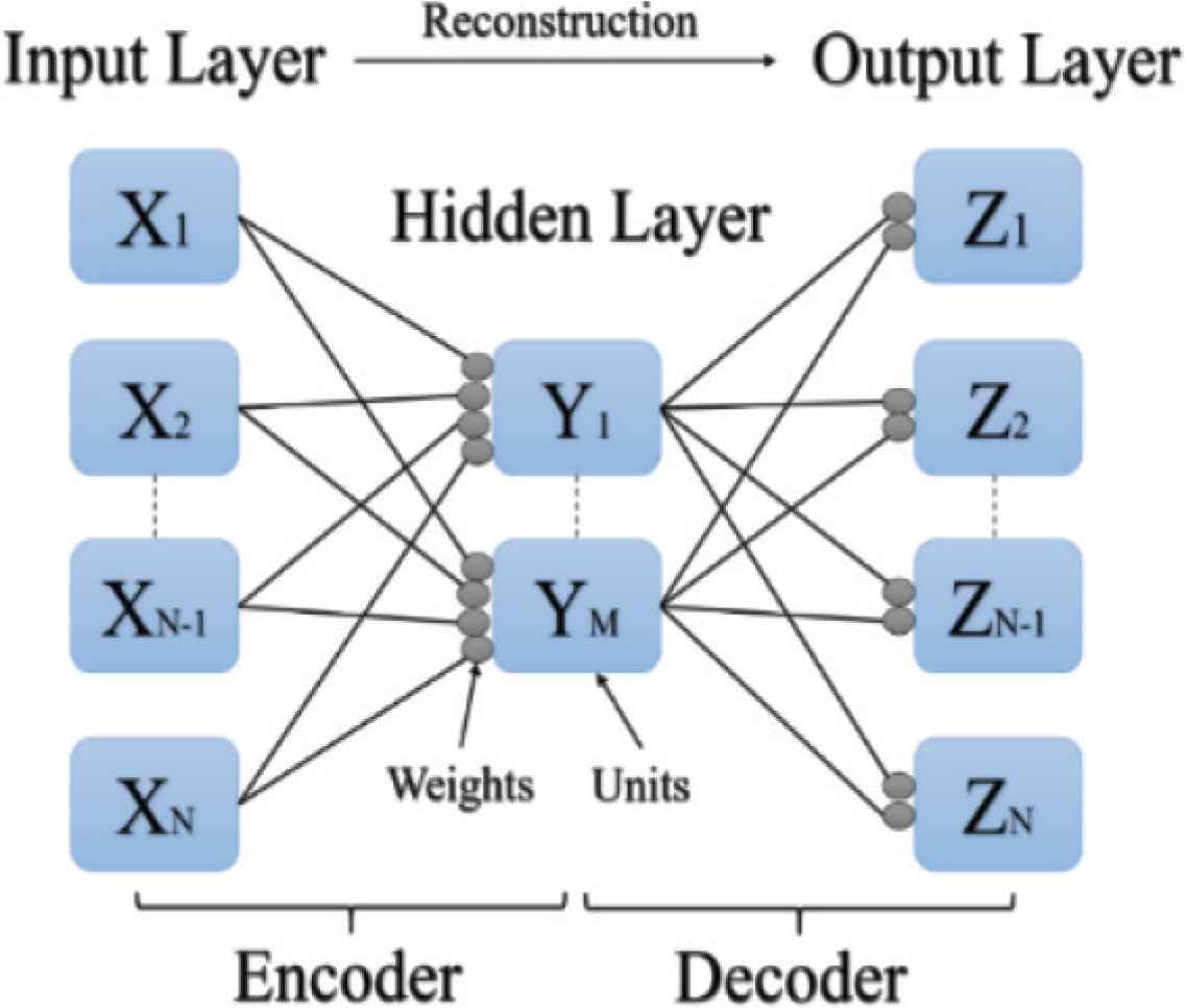 Autoencoders are neural networks that aims to copy their inputs to their outputs. It is used to automatically extract features of training data. AEs are applied for object recognition systems that being used the anomaly detectors [5]. To improve a recognition accuracy, the anomaly detectors has the ability to remove anomalous objects before recognition process to reduce misrecognition. AEs are composed of three fully connected layers: input, hidden, and output layers. These layers are trained to reconstruct input data on the output layer as shown in Figure 1.