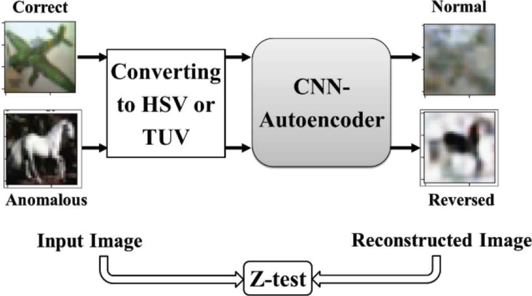 The main concept focuses over using the autoencoder trained with reversed color models in order to detect the anomaly data.