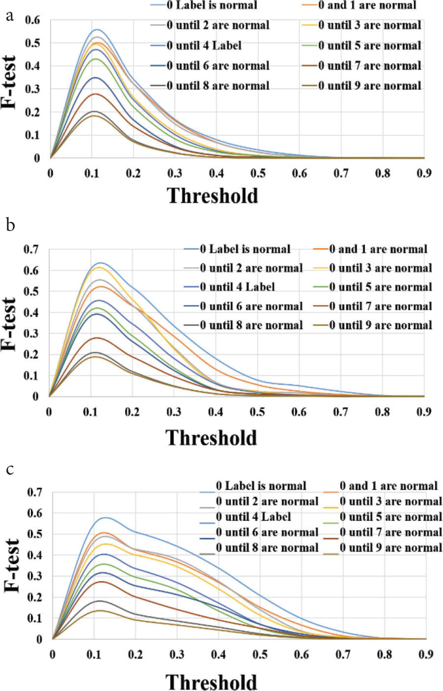 An anomaly detection performance is usually evaluating by using the F-test using the recall and precision as shown in Equation (11) [14]. Accomplishing high recall and high precision is not easy at the same time because the recall and precision goals are often conflicting.