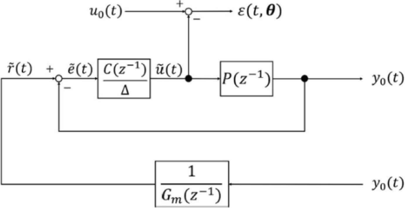 In order to match W(z−1) to Gm(z−1), one-shot experimental input u0(t) and output y0(t) is obtained. Next, a pseudo reference input
