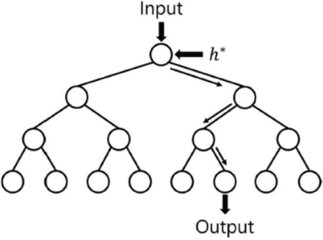 In this paper, a learner is designed to divide closed-loop data into n systems in Figure 3 is designed. Decision tree learning is a scheme of assigning a data set allocated to a parent node to a child node according to a split function h* and creating a decision tree such as Figure 4. The split function h* is obtained as follows: