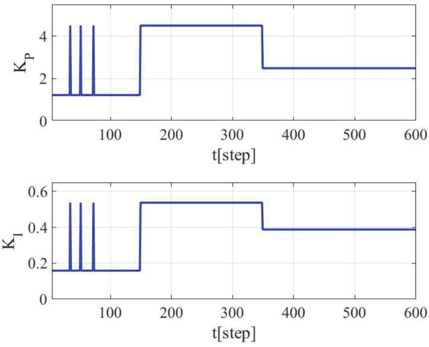 Trajectories of PI gains.