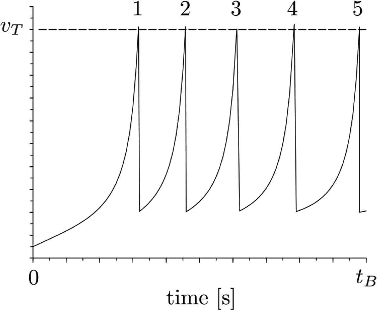 Consequently, from the above discussion, the bursting pattern appears only when the actuator fails. Thus, by just counting the number of the spikes, the failure can be found. Specifically, the detection time tD is defined by