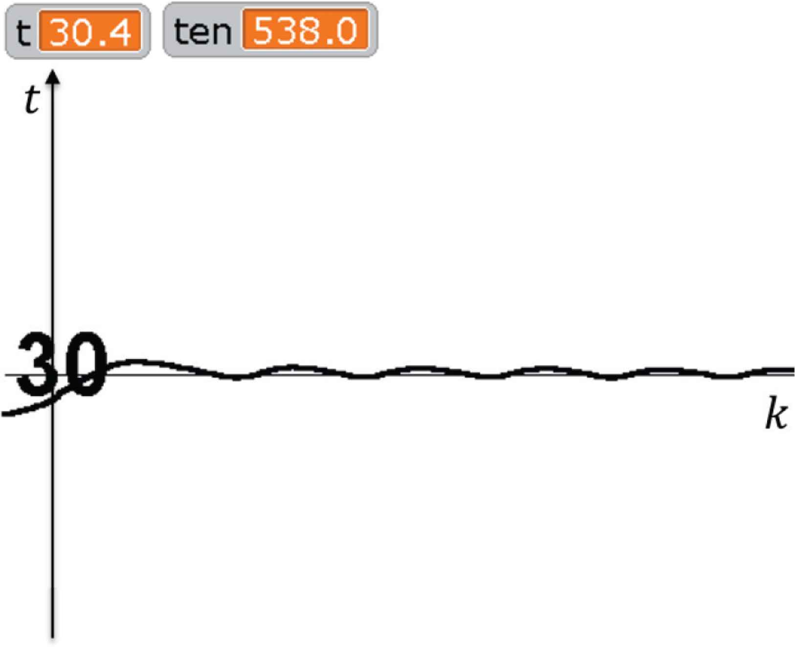 where r and t mean the reference value and the output temperature, respectively. a is a parameter that determines the target zone. This index can quantify how close the controlled value is to the reference value. The large number of ‘ten’ means good control. Students will compete to get high scores of ‘ten’. This activity may become good learning of programming.