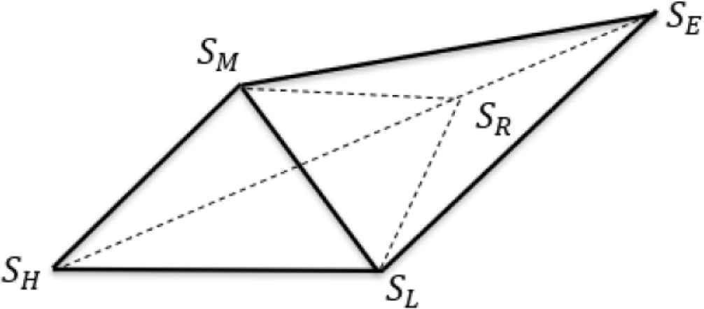 SE is determined as SE = (1 − γ)SG + γSH, where γ is set as γ > 1, and it corresponds to the ratio of distances SESG and SRSG.