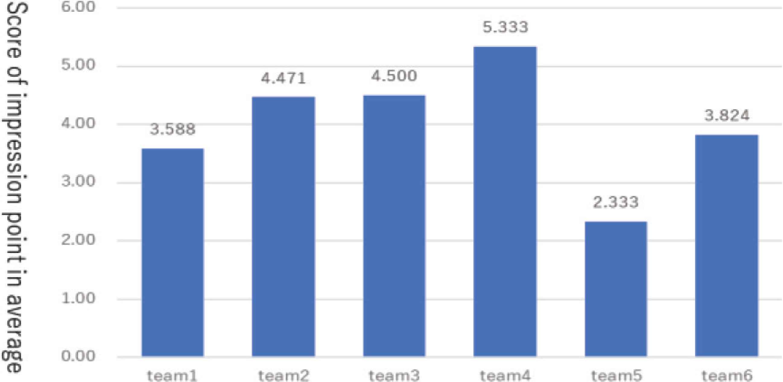 The impression point scores for the six teams are shown in Figure 2, with team 4 receiving the highest rating.