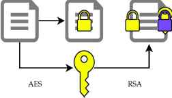 The data is encrypted via AES by a randomly generated key, that is itself encrypted with RSA (cf. Fig. 1).